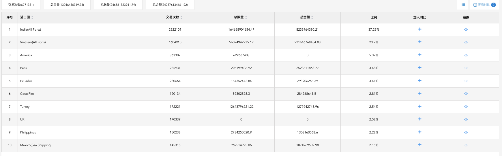 我們GPM系統(tǒng)整合全球185+國家外貿(mào)交易數(shù)據(jù),擁有36億+的數(shù)據(jù)存儲量,幫你實(shí)時(shí)分析東南亞、中東、拉美等新興市場的需求趨勢;