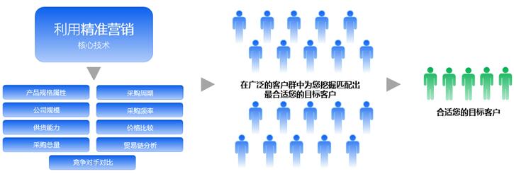 對(duì)貿(mào)易大數(shù)據(jù)進(jìn)行深入挖掘,從覆蓋全球的客戶群中找到和出口企業(yè)最匹配的海外采購(gòu)商,幫助外貿(mào)企業(yè)將80%的時(shí)間、用在20%的精準(zhǔn)客戶身上,提高成交效率。