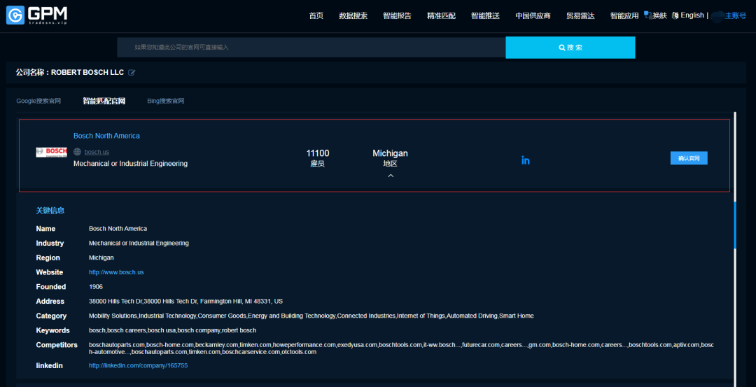 五.智能匹配官網(wǎng):優(yōu)化官網(wǎng)獲取路徑,通過技術(shù)手段可以智能匹配到企業(yè)官網(wǎng)信息。