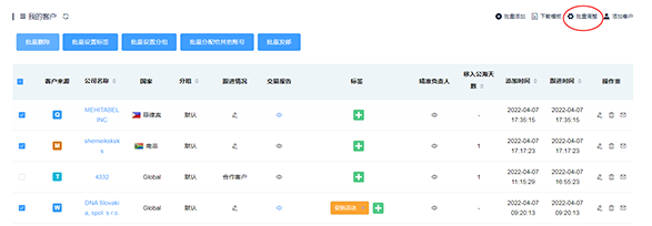 在客戶列表中勾選客戶,可進(jìn)行批量操作: