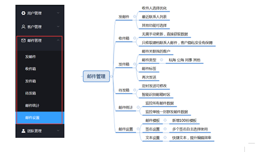(2)收件箱類型劃分為四種:私海 公海 同事 其他,可以關(guān)聯(lián)到客戶管理。
