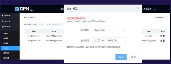 (2)定時發(fā)送新增AI智能識別收件人時區(qū)功能。