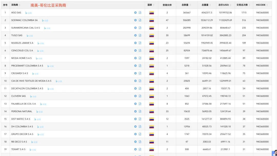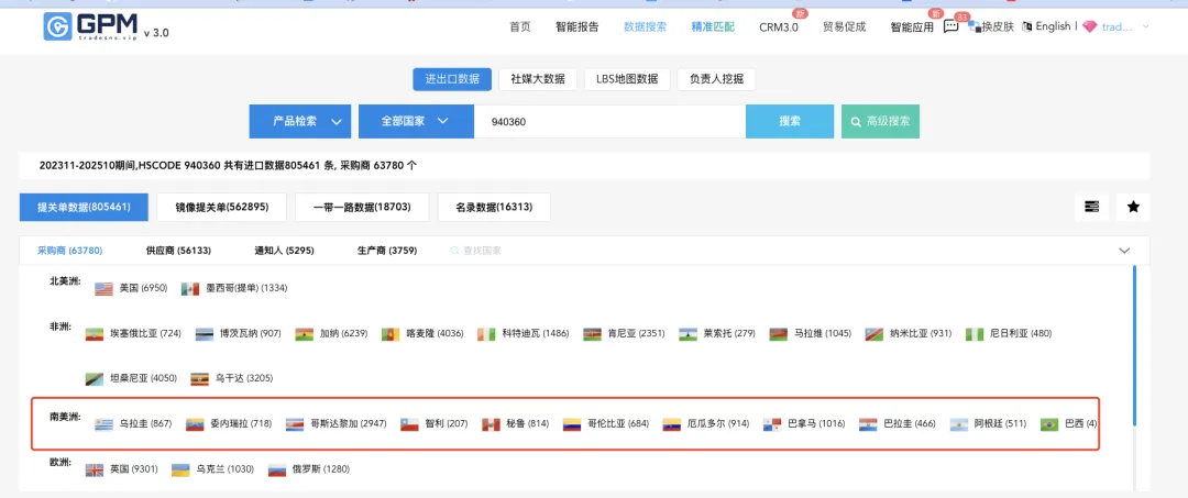以"木質(zhì)家具"編碼為例, 輸入關(guān)鍵詞, 輕松找到目標(biāo)市場(如南美)的客戶群體