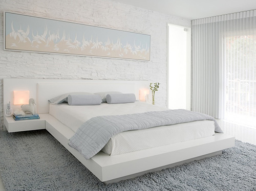5、色調適調。臥室風水是最重要居室風水之一,它很講究顏色風水設計,對臥室顏色的總體要求,是適調自然,不要用太多"深蘭""深紅"之類的沉悶之色。各種顏色要互相搭配,使五行各色樣樣俱備,色彩偏此失彼致使五行不全,不是完美的"家裝風水布局"。